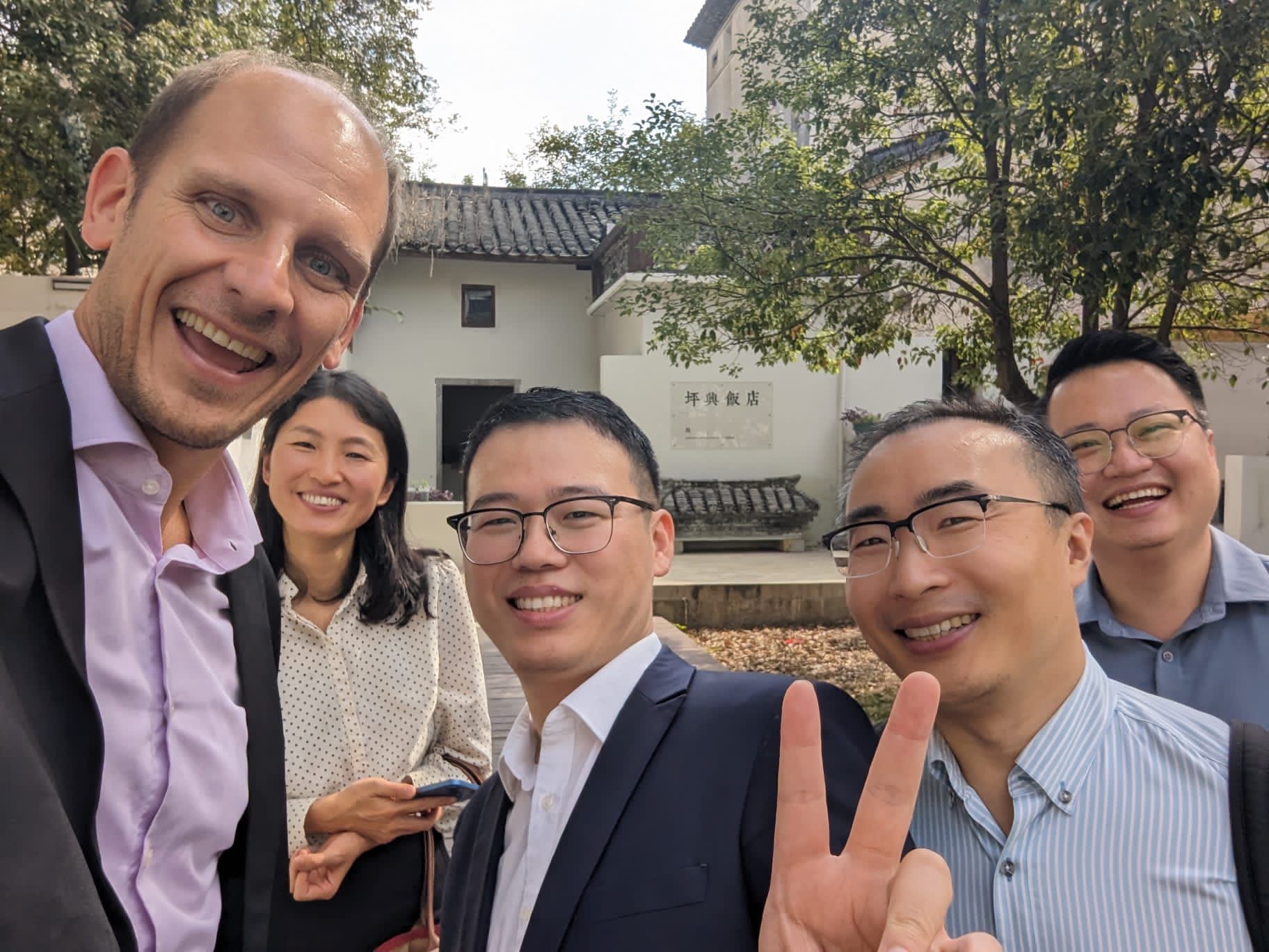左一为Catena-X创始成员、董事、西门子生态总监Claus,左三为高新投李金昊先生,左四为yabo.com创新马洪喜先生